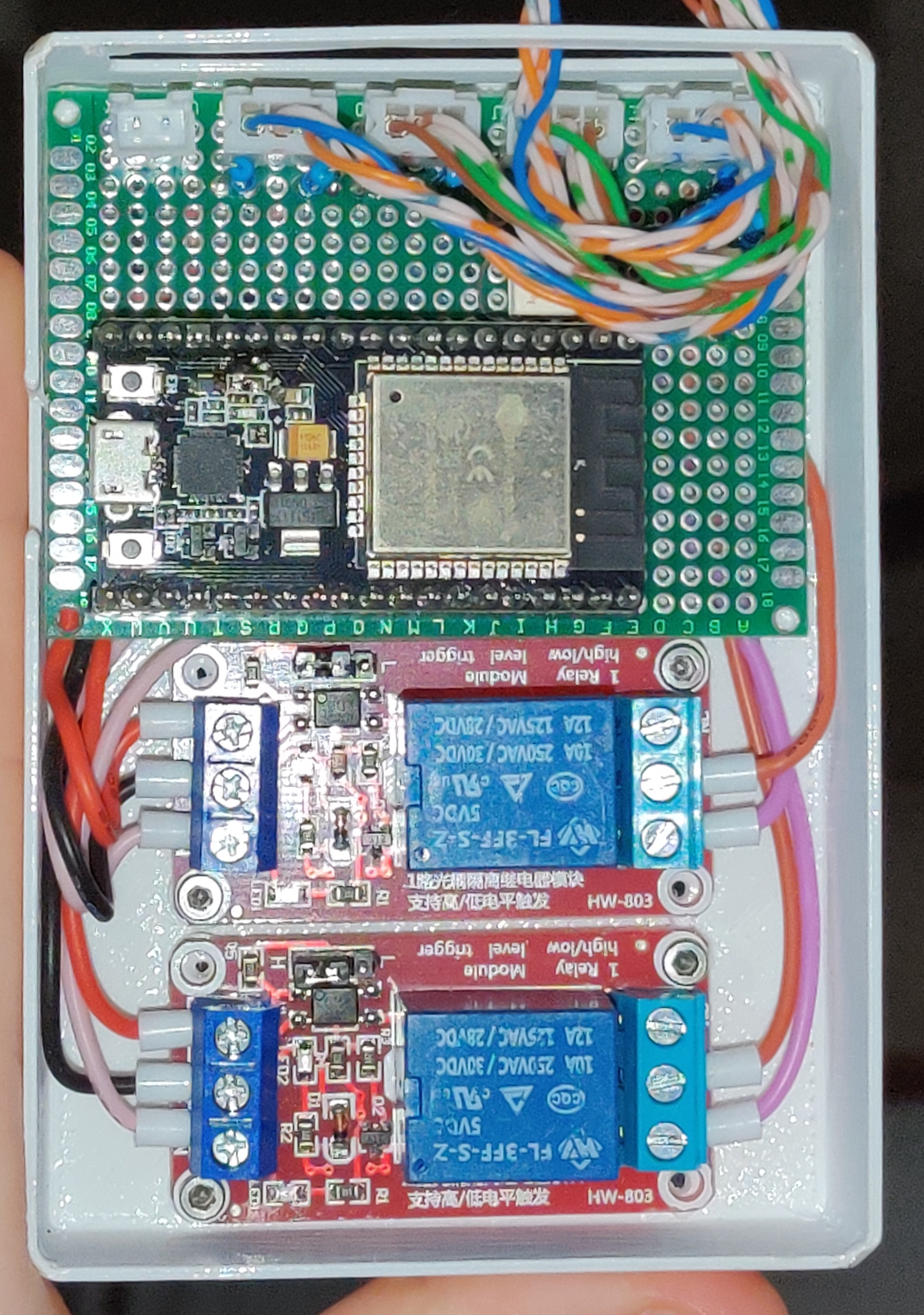 I decided that everything else was simple enough and would work, so I soldered up the board and found that the relays did not work. I had scavenged them from something else, sad. Instead I used relay modules and made the footprint of this module bigger than I wanted to, but its just a prototype, right? This is temporary. (hah)